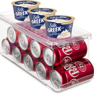Set of 2 Stackable Refrigerator Organizer Bins Pop Soda Can Dispenser Beverage Holder for Fridge, Freezer, Kitchen, Countertops, Cabinets – Clear Plastic Canned Food Pantry Storage Rack Holds 9 Cans